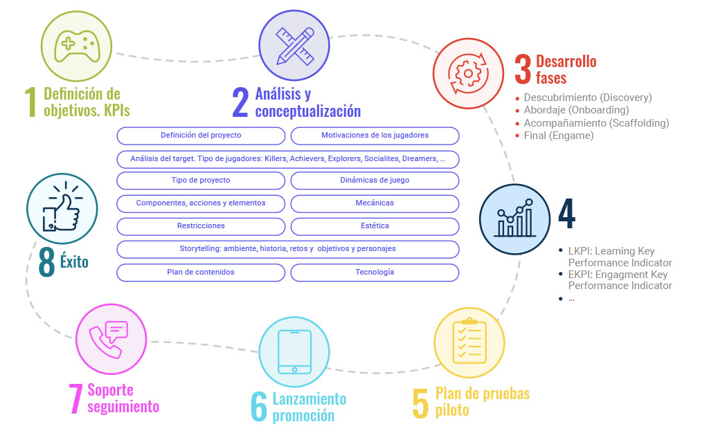 A lo largo de nuestros más de 15 años de experiencia hemos ido desarrollando una metodología propia de gamificación, la cual vamos mejorando con las nuevas tendencias, estudios, tecnologías que van surgiendo, así como la experiencia que nos van dando nuestros casos de éxito.